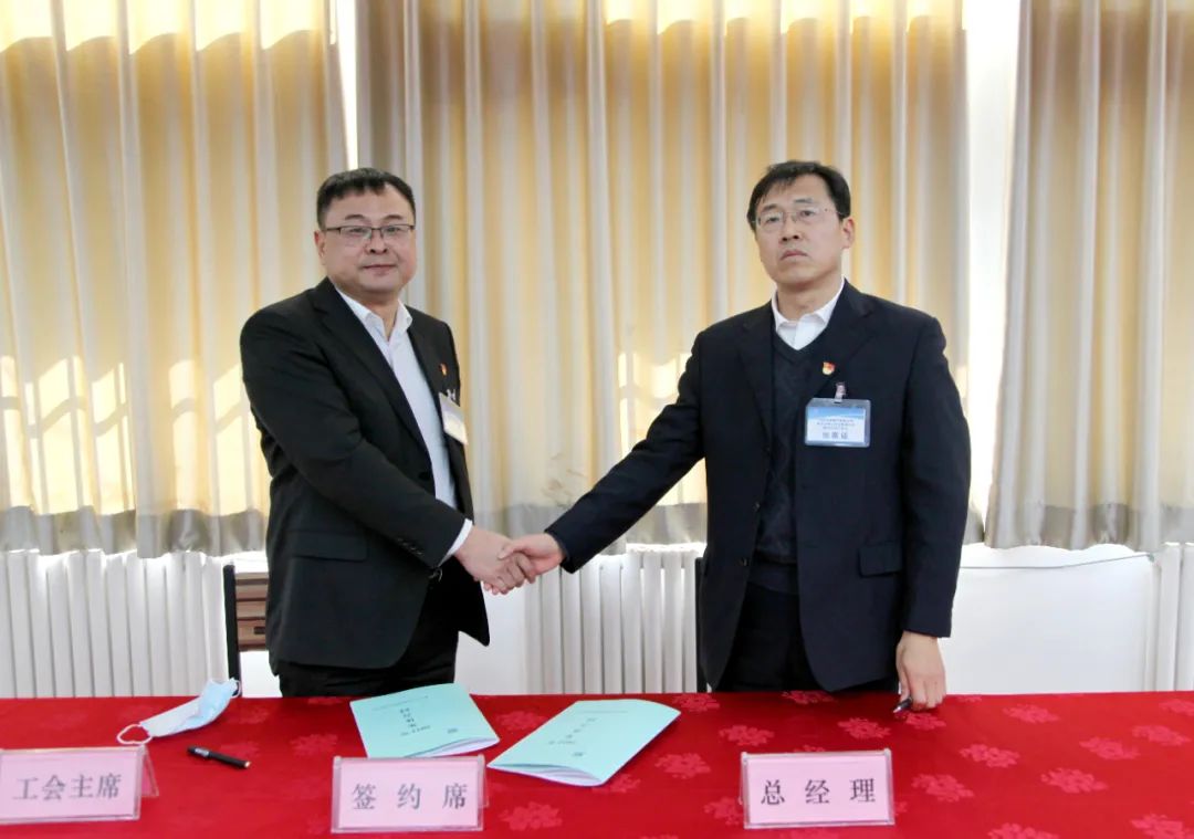 總經(jīng)理郭有勁、工會主席劉紅光分別代表公司行政、工會簽訂了《2022年集體合同》。郭有勁代表公司行政與各生產(chǎn)所負責人簽訂了《2022年生產(chǎn)經(jīng)營目標責任書》《安全質(zhì)量環(huán)保目標管理責任書》。